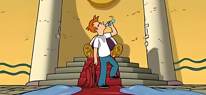 Команда «Межпланетного экспресса» доставляет посылку на планету, населенную жидкими обитателями. Фрай, изнывая от жажды, выпивает бутылку со странным содержимым. Когда выясняется, что в ней был император планеты, то вся власть переходит к Фраю. Но он не сразу осознает, что его жизнь находится в смертельной опасности.