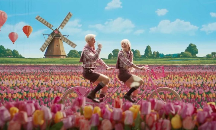 В сцене, где куклы покидают Барбиленд, Кен и Барби едут на велосипедах через поле тюльпанов в месте, поразительно похожем на Нидерланды. Пара одета в одинаковые розовые клетчатые рубашки и коричневые шорты. Эти туалеты не похожи ни на один из нарядов куклы Барби, существующих в реальности, а больше напоминают настоящую классическую европейскую одежду. Велосипедная часть путешествия не требовала никаких отсылок к Европе, поэтому костюмы выглядят причудливо.