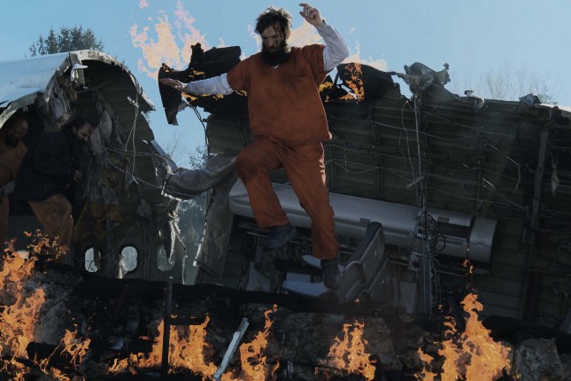 При аварии обычно все группируются, но главных заключённый в балахоне наоборот встаёт в полный рост — смотрится сцена конечно пафасно, но банально.