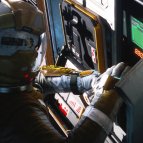 Масса куска скафандра и оторванной руки, тоже, "чуток" ниже массы оставшегося субъекта. Третий закон Ньютона чуточку не так работает, как запомнилось автору этого чудо-эпизода.